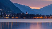 Een vroege zonsopkomst in de zomer bij Zell am See. De stad ligt aan de Zeller See, een meer in centraal Oostenrijk met toegang tot onder andere Kaprun en de Grossglockner Hochalpenstrasse.