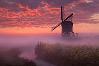 Een schitterende mistige zonsopkomst als deze beloofd vaak een mooie zonnige dag. Deze opname is gemaakt in de Alblasserwaard bij de Broekmolen.