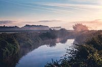 De eerste zonnestralen verlichten de Demervallei in het Hagelandse Langdorp. Het is een serene herfstochtend en het wateroppervlak is glad waardoor de vegetatie langs de oever weerspiegeld wordt.