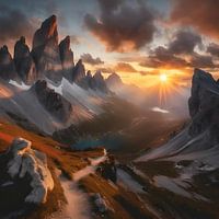Koop dit landschapskunstwerk Zonsopkomst in de Dolomieten van Gert-Jan Siesling op canvas, aluminium dibond, (ingelijste) fotoprint, behang en ArtFrame, op maat geprint in Fine-Art kwaliteit.