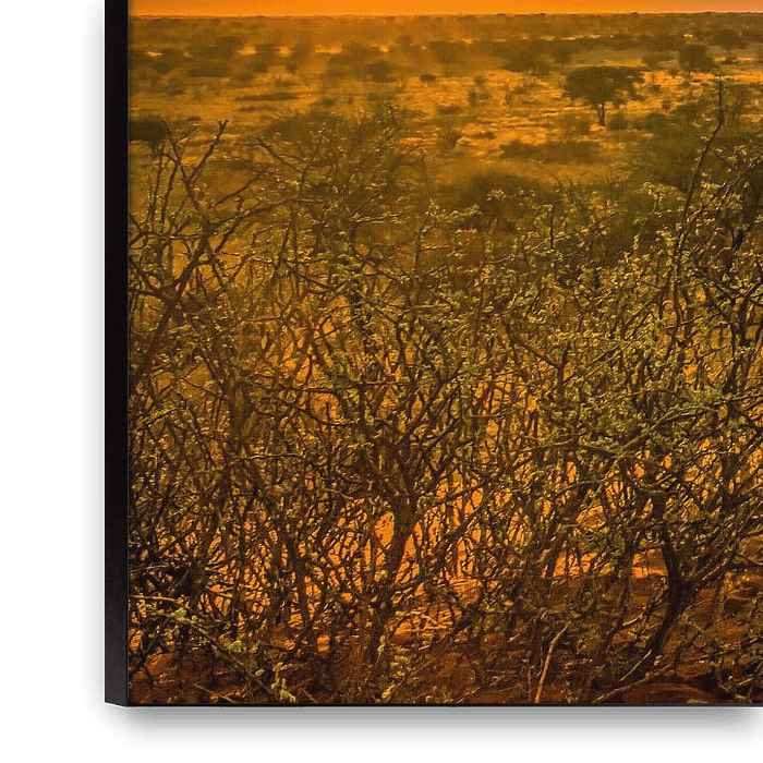 Koop dit landschapskunstwerk Zonsopkomst in de Kalahari woestijn, Namibië van Rietje Bulthuis op canvas, aluminium dibond, (ingelijste) fotoprint, behang en ArtFrame, op maat geprint in Fine-Art kwaliteit.