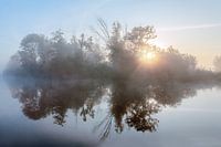 Een mistige ochtend 40 minuten na zonsopkomst ... klam en koud, maar ooooh zo fotogeniek. De zon schijnt door de bomen en doordat het windstil is onstaat er een prachtige spiegel in het water.