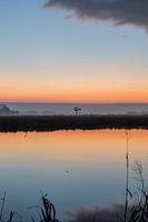 Een prachtige ochtend in het mooie Friesland, waarbij de zon opkomt en de lucht prachtige kleuren geeft. Deze kleuren zie je terug in het water en het beeld geeft een mooi rustige sfeer. De foto is in december gemaakt, dus echt een winterse ochtend.