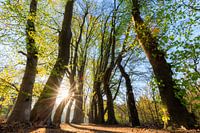 Koop de foto Zonsopkomst in een karakteristieke beukenlaan - Utrechtse Heuvelrug - Nederland van Sjaak den Breeje op canvas, aluminium dibond, (ingelijste) fotoprint, behang en ArtFrame, op maat geprint in Fine-Art kwaliteit.