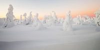 Zonsopkomst in een winters landschap, de zon is nog boven de horizon maar het zachte licht zorgt voor een prachtig geheel.