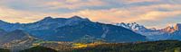 Als u iets heel groots voor aan de muur zoekt, dit weids panorama beeld van mooie zomer zonsopkomst in het Berner Oberland in centraal Zwitserland is doorvoor uitermate geschikt.