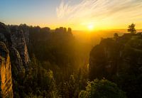 Prachtige zonsopkomst bij de Bastei brug in het Duits, Zwitserse Saksen