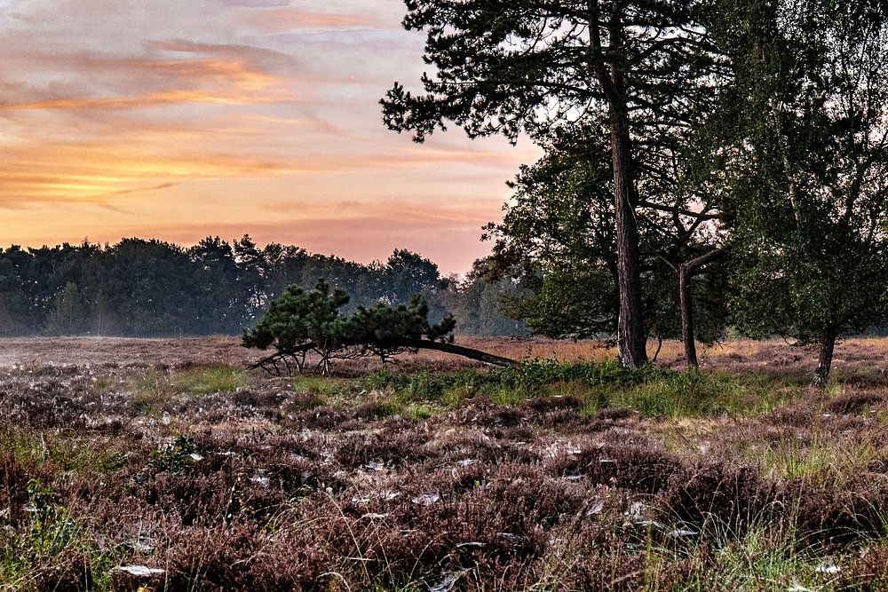 Vroeg in de ochtend bij opkomende mist van een natuurgebied in de gemeente de Wolden (Drenthe)