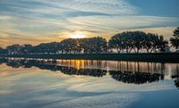 Zonsopkomst aan het Kanaal door Walcheren met spiegelglad water in Middelburg