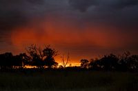 De wekker staat vroeg om 05:00. Achter onze camp-site willen we de opgaande zon fotograferen. Het is zwaar bewolkt, ... zou het iets worden... We zijn nu toch al op, dus maken wat we ervan maken kunnen. De zon begin te komen en er komt een fantastische rode gloed onder de wolken. Duurt maar een paar minuten. Erg mooi!