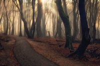Wie gaat het winnen, de mist of de zon? Je ziet hier duidelijk dat de zon aan de winnende hand is en dat heb ik mooi vast kunnen leggen in het Speulderbos nabij Garderen.