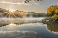 Koop de foto Zonsopkomst met nevel en zonnestralen in de Cranenweyer van John van de Gazelle fotografie op canvas, aluminium dibond, (ingelijste) fotoprint, behang en ArtFrame, op maat geprint in Fine-Art kwaliteit.