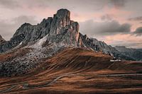 Het is herfst in de Dolomieten en een prachtige zonsopkomst op de Giaupas (Passo Giau) op 2200 meter hoogte.