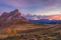 Het is herfst in de Dolomieten en een prachtige zonsopkomst op de Giaupas (Passo Giau) op 2200 meter hoogte.
