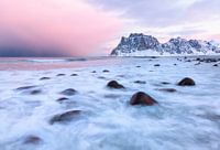 Uttakleiv strand ligt op de Lofoten in Noorwegen.