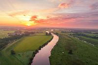 Zonsopgang boven de Overijsselse Vecht tijdens een mooie herfstochtend in Overijssel, Nederland. De Overijsselse Vecht ontspringt in Oberdarfeld in de Duitse deelstaat Noordrijn-Westfalen en stroomt noordwaarts naar Nedersaksen, over de grens met de Nederlandse provincie Overijssel. Daar stroomt de rivier door de regio Salland en vlakbij Zwolle mondt de rivier uit in het Zwarte Water.