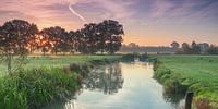 Sfeervolle zonsopkomst op een heldere najaarsochtend, boven de weilanden langs de Kromme Rijn, ter hoogte van Landgoed Rhijnauwen, bij Bunnik. De foto is genomen vanaf het jaagpad / Kromme Rijnpad, in Zuidoostelijke richting.