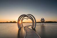 Prachtige zonsopkomst bij het strandbad Slijk Ewijk net buiten Nijmegen. Mooie lucht, mooie kleuren en zeker iets sereens. De zon die net om het hoekje komt kijken. Erg fijne en rustige ochtendsfeer. Met een lange sluitertijd is het water mooi vlak.
