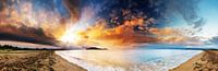 Prachtige zonsopkomst op het strand van Maroantsetra op het eiland Madagaskar voor de kust van Afrika in de Indische oceaan met een dramatische lucht en zicht op het eilandje Nosy Mangabe