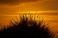 Zonsopkomst op het strand van Schiermonnikoog. Duinen met helm.