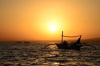 Zonsopkomst boven bootje op de zee in Bali, Indonesie.