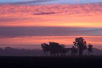 Windstil en koud begon de ochtend in Brabant. De bomenrij op de achtergrond geeft rust en een mooie dieptewerking aan de foto. De pasteltinten van de lucht veranderden van minuut tot minuut.