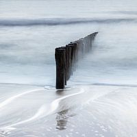 zeeland art, het strand van Zoutelande in Nederland heeft een mooie kustlijn om prachtige foto's te maken van de paalhoofden. zeeland heeft een mooie kust. Lange sluitertijd geeft de fotografie van zeelandschappen een speciaal effect. Stilleven. Golfbreker ook wel paalhoofden genoemd.
