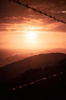 Een bijzondere zonsondergang deze avond. Onder het grijze wolkendek breekt de zon nog één keer door, dat zorgt voor een mooi tegenlicht bij het silhouet van Zoutelande. De glooiing van de duinen is goed zichtbaar door de sterke contrasten.