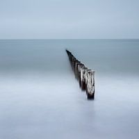 art in Zeeland, het strand van Zoutelande in Nederland heeft een mooie kustlijn om prachtige foto's te maken van de paalhoofden. Zeeland heeft een mooie kust. Lange sluitertijd geeft de fotografie van zeelandschappen een speciaal effect.
