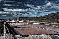 In het zuiden van La Palma zijn er nog zoutfabrieken. De rode kleurstelling en de donkere lucht zorgen voor een dramatische sfeer.