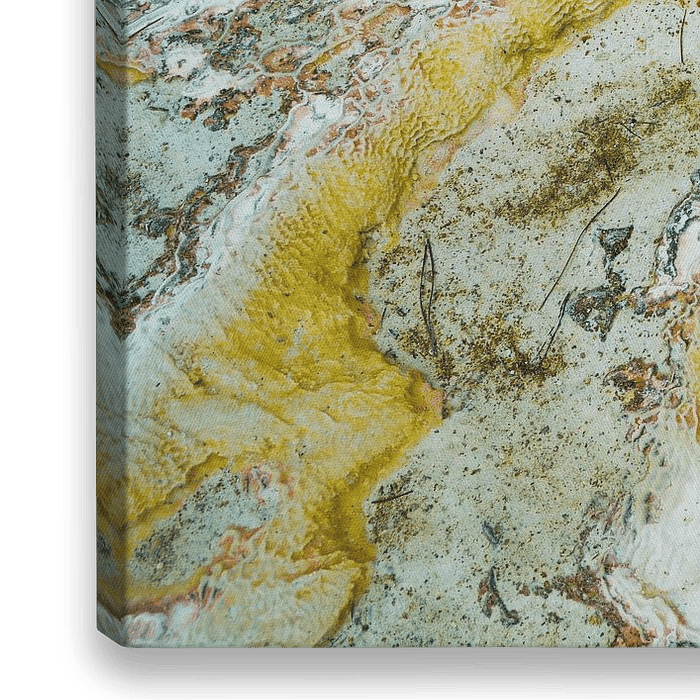 Koop dit landschapskunstwerk Zoutvlakte Structuren | Geel en Groen van Nanda Bussers op canvas, aluminium dibond, (ingelijste) fotoprint, behang en ArtFrame, op maat geprint in Fine-Art kwaliteit.