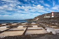 Zoutmijn en vuurtoren in het zuiden van La Palma, Canarische Eilanden.