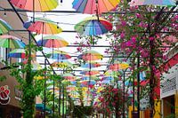 Tijdens een wandeling in Puerto Plata, Dominicaanse Republiek is de Calle San Felipe een niet te missen straat. Het staat bekend om zijn vele kleurrijke paraplu's. Echt een gezicht om iedereen blij mee te maken.