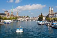 Zürich - Limmat met Grossmünster, Frauenmünster en Münsterbrücke van t.ART