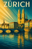 Deze Zürich reisposter in vintage stijl presenteert de historische charme van de grootste stad van Zwitserland in een verfijnde Art Deco esthetiek. Met de iconische Grossmünster torens die boven de rivier uitsteken, met gouden stralen die de oude stad verlichten en reflecteren over het water, viert het ontwerp Zürichs mix van geschiedenis en elegantie. De compositie maakt gebruik van warm geel en diep blauw om een tijdloze sfeer te creëren die doet denken aan klassieke Europese reisposters. Zürich staat bekend om zijn culturele rijkdom, schoonheid van het meer en bruisend stadsleven, en dit kunstwerk legt die essentie perfect vast. Of je nu langs de rivier de Limmat hebt gewandeld, de middeleeuwse architectuur hebt bezocht of gewoon het Zwitserse erfgoed bewondert, dit kunstwerk is een stijlvolle herinnering aan de allure van de stad. Het Zürich wandkunstwerk is ideaal voor zowel reizigers als liefhebbers van Art Deco design en werkt prachtig in een woonkamer, studeerkamer of kantoor en brengt een verfijnde Europese touch in elk interieur.