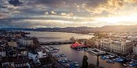 Zicht op Zürich en het meer van Zürich vanaf de Grossmünster.