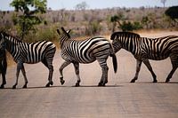 Zebra's steken de weg over. Foto genomen tijdens mijn trip door Zuid-Afrika in 2009.