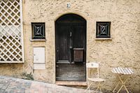 Deur met een tafel en stoel voor een huis in het zuiden van Frankrijk