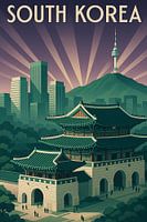 Zuid-Korea Art Deco Poster - Seoul Skyline en Gyeongbokgung Paleis van Travel Shop