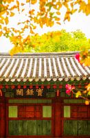 Een zuid koreaanse tempel in de herfst met mooie bladeren in herfst tinten.