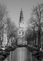 De Zuiderkerk in Amsterdam gezien vanaf het bekende bruggetje met de love slots van de Groenburgwal.