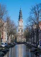De Zuiderkerk in Amsterdam gezien vanaf de beroemde brug met de liefdeslotjes van de Groenburgwal.