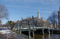 Een winterfoto vanaf de Kloveniersburgwal - Amsterdam met op de achtergrond de Zuiderkerk. Echt Holland.