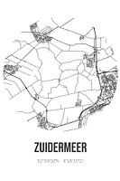 Zwart-witte landkaart, stratenplan of plattegrond van Zuidermeer. Zuidermeer is gelegen in de gemeente Koggenland, provincie Noord-Holland. Op de stadskaart zijn alle openbare wegen in Zuidermeer opgenomen. Verder is de kaart voorzien van de coördinaten van het centrum van Zuidermeer.