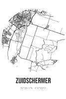 Zwart-witte landkaart, stratenplan of plattegrond van Zuidschermer. Zuidschermer is gelegen in de gemeente Alkmaar, provincie Noord-Holland. Op de stadskaart zijn alle openbare wegen in Zuidschermer opgenomen. Verder is de kaart voorzien van de coördinaten van het centrum van Zuidschermer.