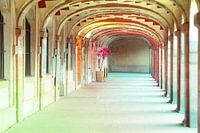In de gaanderijen zijn winkeltjes, terrassen en ook veel kunstgalerijen gevestigd. Je kunt het hele plein overdekt rondlopen onder de fraaie bogen.