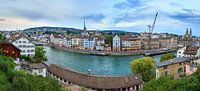 Prachtige panoramische opname van de skyline van de stad Zurich, Zwitserland, met de rivier de Limmat in de zomer met wolken