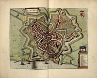 Jan (Joan) Willemsz. Blaeu (Amsterdam) was een Nederlandse drukker en uitgever, cartograaf en uitgever van vermaarde atlassen uit de gouden eeuw. Hier portretteert hij elke Nederlandse vestingstad.