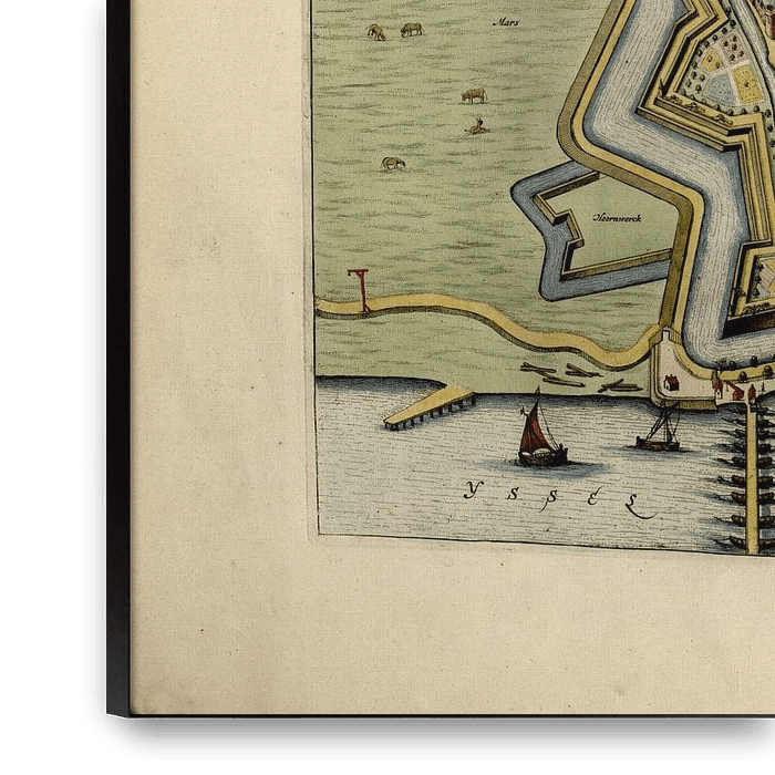 Koop de illustratie Zutphen, Stadsplattegrond Joan Blaeu 1652 van Atelier Liesjes op canvas, aluminium dibond, (ingelijste) fotoprint, behang en ArtFrame, op maat geprint in Fine-Art kwaliteit.
