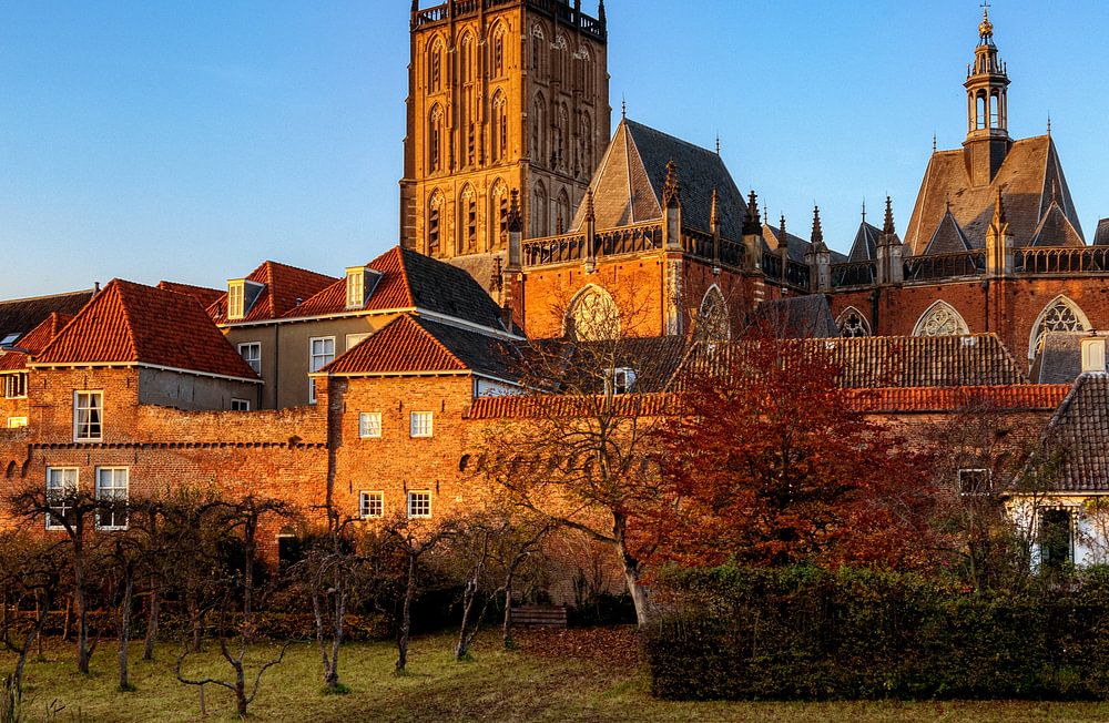 Zutphen is een middelgrote stad in de provincie Gelderland. Het is een oude Hanzestad die aan de rivier de IJssel ligt. Op de foto zien we de Walburgiskerk en een deel van de stadsmuur.
